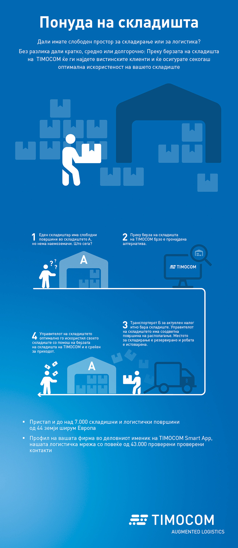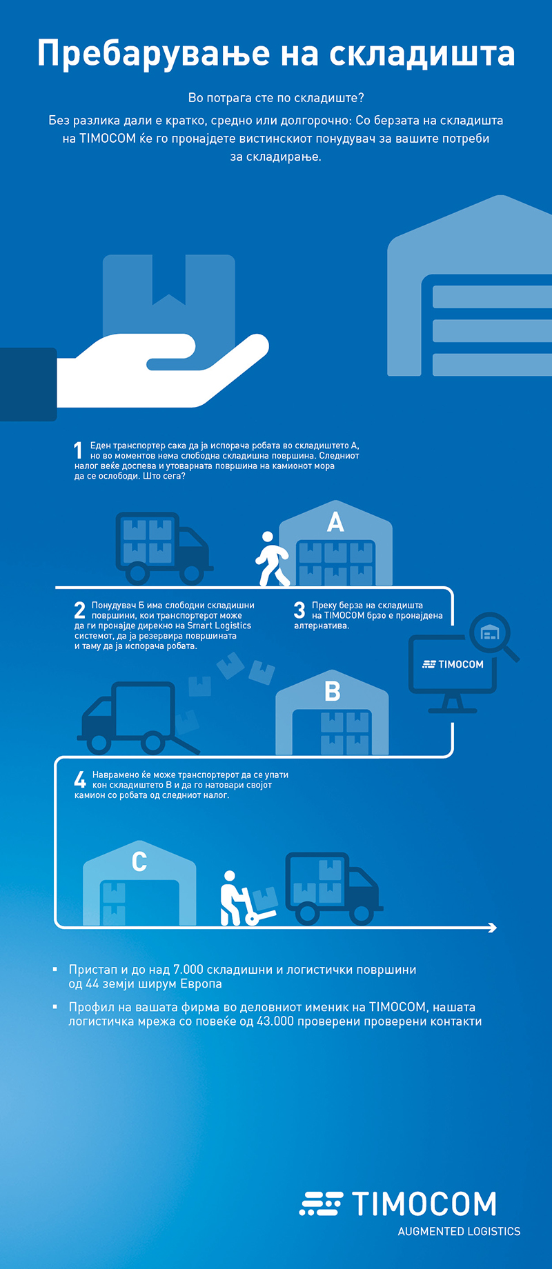 - Внес на вашата фирма во деловниот именик на TIMOCOM, нашата логистичка мрежа со повеќе од 55.000 проверени контакти